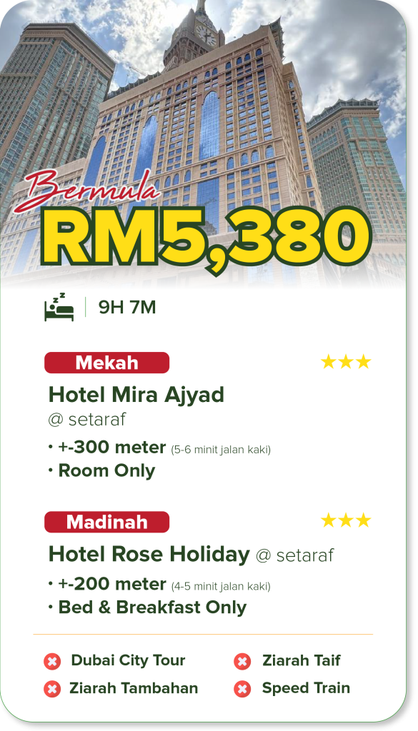 Ada soalan tentang pakej umrah? Klik sini untuk whatsapp Team Kembara Umrah